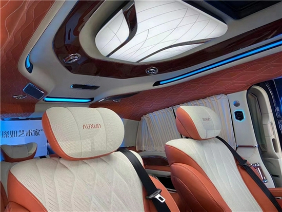 全车内部真皮包覆,造就内部绝对奢华氛围。顶灯设计理念十足,以更精美视觉体验拉开全新篇章。搭配高档Alcantara麂皮绒包覆顶棚,烘托内部极致完美,引领驾驶无限体验。内部高档定制实木地板,实木材质质感十足,享受驾驶无限乐趣。搭配私密绒布窗帘,保证内部隐私安全,开启安全私密驾驶之旅。