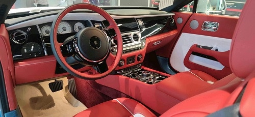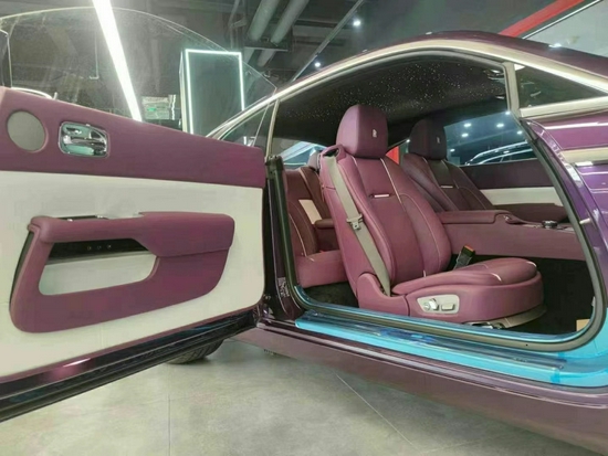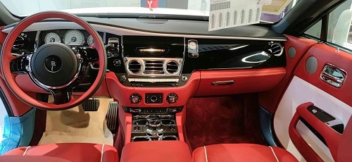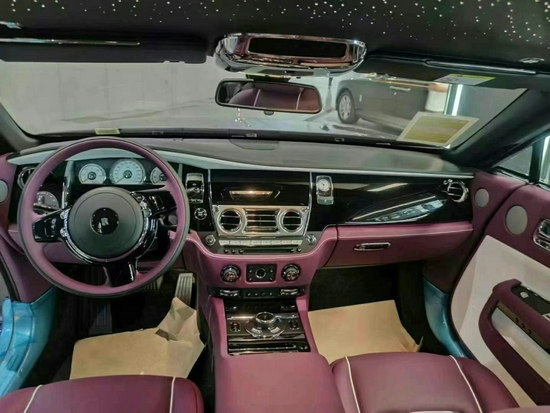 劳斯莱斯魅影整个内饰与古斯特 (配置|询价)几乎完全相同,设计十分古朴,顶级材料与精致手工搭配出了顶级豪华车才有的氛围,凡是能触及的地方均有皮质或实木覆盖,三辐皮质包裹方向盘的盘辐较大,给人一种沉稳扎实的感觉,方向盘可4向电动调节,调节更加精准,但不建议您在驾驶时操作,行车电脑信息通过左侧拨杆切换,操作较为简单。