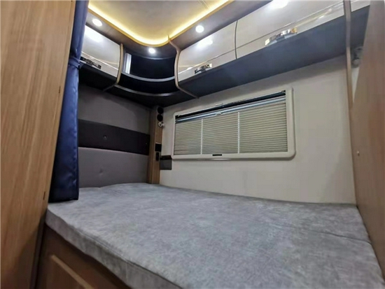 前额头配有天窗及双人床(2210*1500mm)。影音娱乐配有互联网智能电视(可选装投影幕布)搭配高品质音响,视听效果更加震撼。