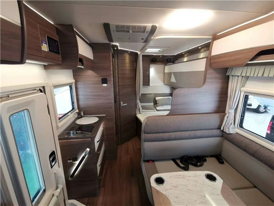 国六依维柯自动挡中额头C型房车,在外观设计上继续沿用旧款中额头造型,中额头造型最大的优势是美观、车身协调。作为格林卡诺F329E车型升级国六后的车型,还肩负着将新品牌发扬光大的使命。新车外观采用无胶榫卯工艺,杜绝了胶体风吹日晒后变黄变脏和老化开裂漏水的隐患,相对于用胶较多的车型,它具备天然优势。这款车的三围尺寸分别为5980×2450×3230(mm),整备质量仅为3490kg,几乎可以和全进口上装的合资车型一较高下。在被动安全方面,整车的厢体内部预埋有铝合金框架,有效增强了车体结构刚性。