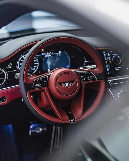 2021款宾利欧陆GT有三面扭转显示屏,先看中控台是12.3英寸大屏触摸导航,不要鄙视这块屏她另有奇异的地方,按屏幕左下方按钮,中控12.3英寸高清显示屏就会翻转到传统中控3个圆表的面,三个圆表代表着温度计,秒表,罗盘。这么似乎又回到从前复古宾利内饰中。但是反转又来了,当把启动按钮关掉以后,全部又翻转没有液晶屏的模样。