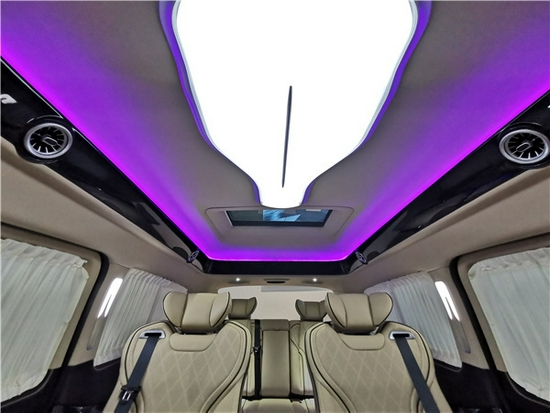 2+2+3座椅排列,也是当今豪华商务车较为流行的设计,极大的后排空间和载物能力都使得它在于竞争对手分析的交锋中可以有着更弱的优点。后舱的车灯也很用心,尤其是两侧的长条氛围灯,做得很有豪华感。车顶设计了双景超大电动天窗,白天可大大增加车内的采光,夜晚可以享受梦幻的星空,为您的出行增加一份不言而喻的惬意。