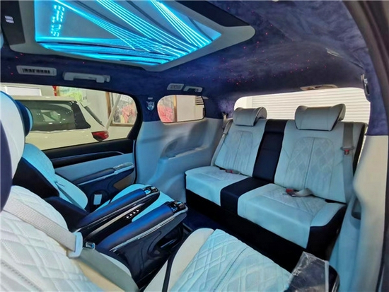 第三排不坐人,那么第二排的空间可以调整到最大,伸直身子和腿躺着都完全没有问题。多数用户的天窗都是闲置的摆设,这个时候,打开顶灯,空间的舒展感会更加明显,打开音响,剧场般的听觉享受油然而至,打开PM2.5过滤系统,山涧清风般的空气萦绕四周,坐车是一种享受,得到了完美的阐释。而上下车的电动门则可以通过三个地方控制,快捷方便。