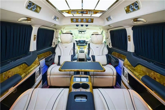 全车地毯及窗帘均采用了进口的羊绒材质,在用料方面真的是很用心。第三排座椅不只可以坐人,在旅途劳累的时候也可以一键电动成床进行休息。 这款全新奔驰V级圣母峰-凯旋版,不仅有着非常亮眼的外观,在内饰豪华感方面营造的也非常到位。全车的KEDE siri语音控制系统和先进的人机交互系统都是其它竞品车型没有的,那么这样的一台国六V级座驾,你会喜欢吗?