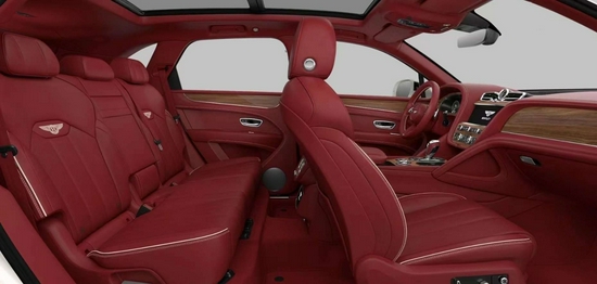 选配:反衬色缝线及滚边、宾利徽章座椅刺绣、LED 迎宾灯、5座舒适配置、3辐式单色加热真皮镶边方向盘、羊毛地毯、22英寸五幅定向铝合金黑色喷漆轮毂、颜色配置、添越炫黑套件、标准刹车碟配红色卡钳