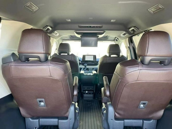 21款丰田塞纳内部空间非常大,充分发挥了MPV的优势。 座椅全部采用双色真皮,第二排座椅的腿部支撑,放倒第三排座椅,加上腿部支撑,完全变成了两张摇篮床,让长途旅行多了一份舒适。宽敞舒适后座空间,配上该车安全稳定的行驶系统,保证途中也能舒适地谈上生意。