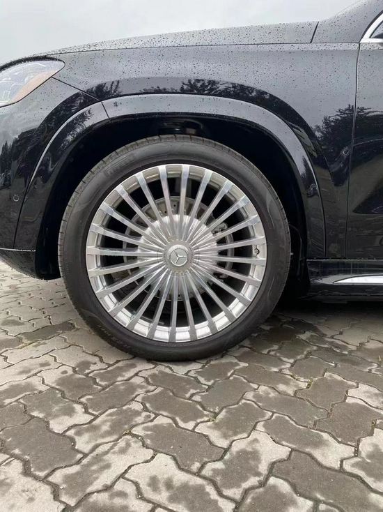 新车前脸配备了直瀑式金属镀铬格栅,下方格栅为点阵式镀铬造型,两侧还提供了全新LED头灯组。车身采用了经典的双色涂装,侧面装配亮色多辐式铝合金轮毂,整体气场十分强大。此外,后排还标配了隐私玻璃,C柱位置加入了迈巴赫车型专属LOGO。车尾部分采用双边单出的排气布局,上方配有贯穿式镀铬饰条连接两侧LED尾灯组。首先这是三叉星徽立标第一次出现在SUV车型上,配合梅赛德斯-迈巴赫风格竖直格栅和专属外观套件,以及高大的车身和抬升的底盘,气度恢弘。