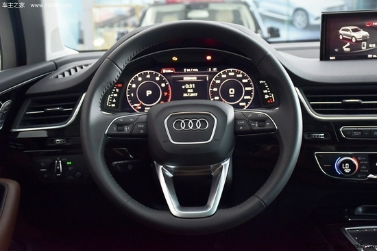 21款奥迪Q7内饰也彻底贯彻了奥迪科技生活的理念,全数字化液晶仪表盘,多功能方向盘、全新电子挡把、带有大尺寸手写板的MMI系统一应俱全。仪表台做工十分精细,各相关接缝均匀,与车门处的间隙合理。中控台的功能键排列有序,在排挡杆的周边,布置了MMI多媒体交互系统和一键式启动按钮。