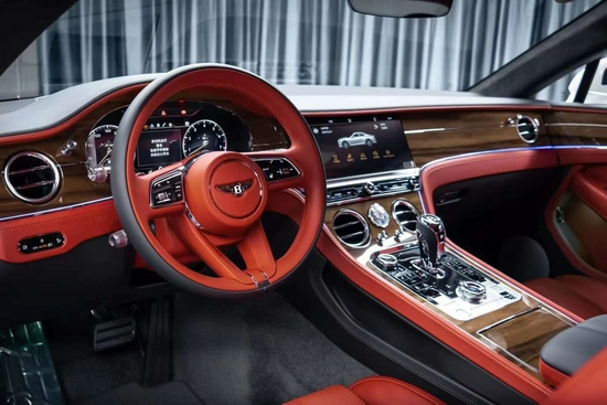21款宾利欧陆GT内饰承袭宾利车型的经典设计,仪表板采用流线型双翼设计,与宾利徽标交相呼应。双翼造型从精美的中控台优雅地延伸到两侧车门,并进一步舒展,形成以匠心手工真皮和实木饰件打造而成的环形空间,令浑然天成的座舱更具安全舒适的包裹感。
