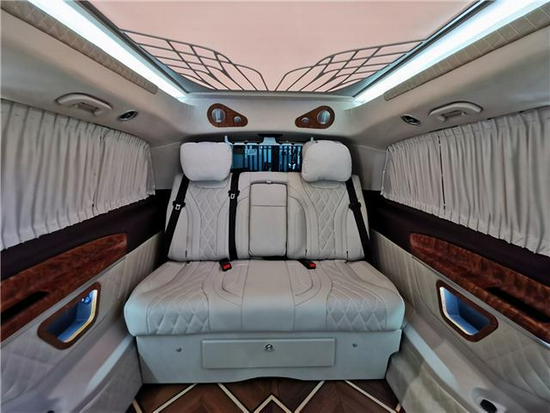 奔驰V260L改装案例及奔驰V260改装车欣赏,包括奔驰V260L外观改装、奔驰V260操纵改装、奔驰V260内饰改装,奔驰V260改装商务车是集商务贵宾、郊游、办公娱乐于一体的高端MPV,外观顺畅的车身流线搭配高顶设计,摆脱了传统商务车的笨拙,使奔驰V260看起来十分的稳重大气,内饰通过改装实现了满足商务接待、洽谈、出游等各种出行需求。全车真皮包覆质感十足