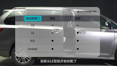 丰田塞纳这款车,从XLE型开始配备实木内饰和真皮方向盘等配置,也就是说从XLE开始,才能算是中高配车型。不过,下面这些配置,加版车型是标配,而墨版塞纳,则全系没有,他们分别是: