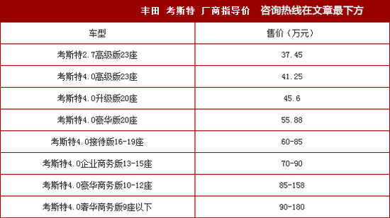 北京考斯特商务车基地本公司车型现车均有加装过VIP版、个性定制商务版、专业服务、专业对车、销售所有车辆均可全国上牌、享受原厂服务质量保证、全国质保。目前进口丰田考斯特、9座、10座、11座、12座、13座、15座、16座、17座、19座、20座、23座现车销售, 豪华内饰改装。考斯特整体造形美观,内部改装布局充分考虑与丰田考斯特整车的平衡,每位乘客能切身体会尊贵。文章尾部有购车咨询电话。