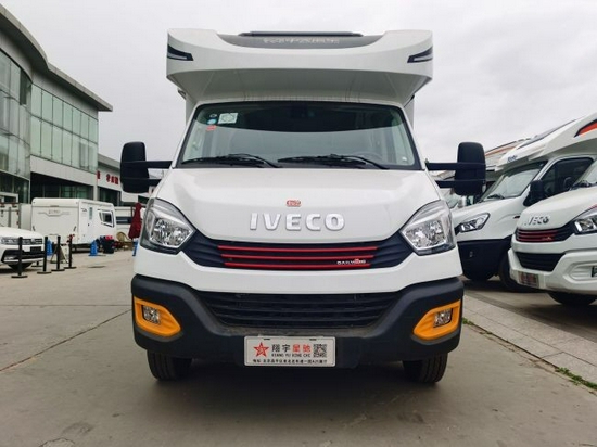国六依维柯欧盛自动挡T型小额头房车采用了中外合资的依维柯底盘,本身的尺寸为5940× 2395 ×2950mm,柴油3.0T动力,最大功率125KW,8速手自一体变速箱,荷载六人,C证即可驾驶。基本参数:发动机形式采用直列四缸、增压中冷、共轨,发动机排量2998 ml,最高车速120Km/h,轴距3300 mm,制动模式四轮盘式制动。