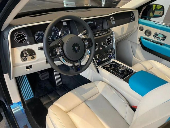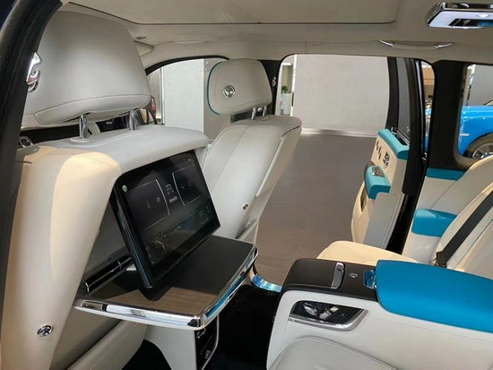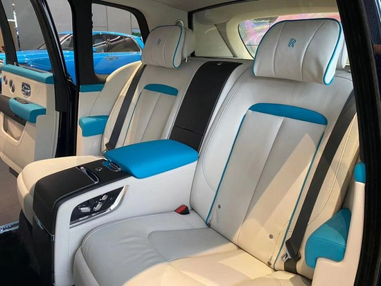 保持前排座椅位置不变,此时头部剩余空间为两拳,而腿部剩余空间和体验者小臂长度一致,这样的空间表象足以我们满足大多数用车情景下的空间需求。库里南的前排座椅采用蓝/白双色搭配的设计,看上去典雅大气,给人一种视觉上的享受。
