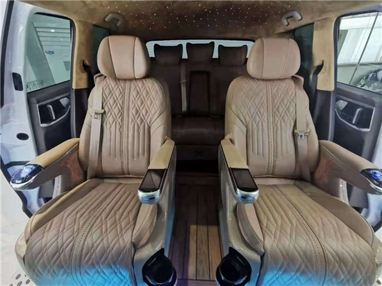 商务车航空座椅功能:座椅电动前后、靠背电动调节、电动腿托、360度手动/电动旋转、固定/活动扶手、座椅通风加热。