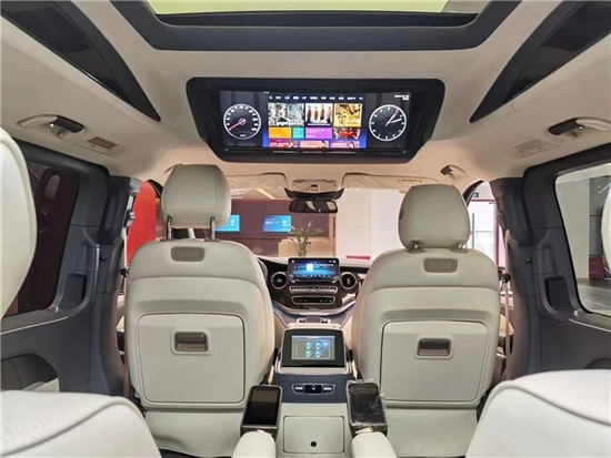 车内定制的豪华真皮座椅,具有多项电动功能,随时可以释放身心的疲累,加热,通风,按摩,脚托和自由旋转,都可以在一键操作下完成,尤其是后排座椅,可以放倒成床,保证睡眠有在家一样的温馨。隐私窗帘具有天鹅绒的柔软质感,美观又实用,可以阻挡住外来的一切纷扰,保证车内处于安谧的氛围。隐藏的可加热杯托,合理的利用了空间,也满足了出行当中对生活细节的需求。电动尾门的配置,让开启更加灵活,拿取物品十分的方便。