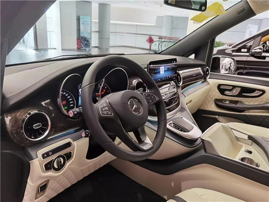 奔驰V (配置|询价)260L高顶黑白双拼色在外形方面延续了家族的设计理念,标志性的平直外观,流线型的车身线条,一种稳重典雅气质格外鲜明。镀铬进气格栅,鹰眼式LED大灯和雾灯组,相互搭配显得熠熠生辉。锻造式轮毂凸显出不同的身份,搭载2.0T动机,匹配9速自动变速箱,四轮空气悬挂,强劲的动力系统,让该车的最高车速可以达到185km/h,当行驶在路面时,风驰电掣的感觉呼啸略过。