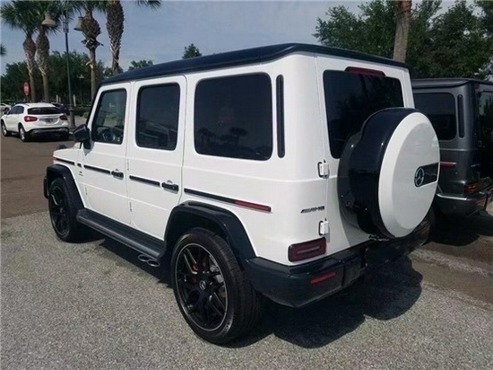 20款奔驰G63搭载的4.0T 双涡轮增压V8发动机,搭配9挡手自一体变速箱,最大马力585匹,最大扭矩850N/m,车身尺寸 4764*1867*1954,前后轴距为2850mm,最小离地间隙205mm,油箱容积100L,百公里油耗市区约14.5L,高速约11L。强劲的楔形特征以及醒目的奔驰车标使其在静止不动的时候都能让人感受到它奔放的气息。