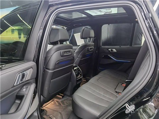 20款宝马X5车侧线条较为平直,车顶线条、腰线等都没有太多刻意追求俯冲感,符合大型SUV应有的性格,而上下双腰线的设计也让车辆从侧面看上去不会太过平淡。车尾设计追求简约,两侧扁平的多边形LED尾灯组与前大灯相呼应,并由中央镀铬饰条相贯通,提升了美感。