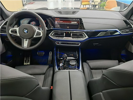 20款宝马X5车内彰显出强健的气魄和全面的道路适用性。真皮的多功能方向盘手感极佳,宽大的中控台简洁流畅,多功能电动驾驶座椅舒适性十足,整车采光效果十分出色。新设计更高档,采用三辐式多功能方向盘设计,采用无框后视镜设计,中控台底部还配备了无线充电功能,中控功能键盘也重新设计中控出风口中间还配备了一块小尺寸液晶屏上面显示一些空调温度和风量。
