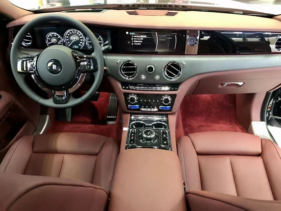 劳斯莱斯古斯特 (配置|询价)内饰,整体强劲而低调,风格现代优雅。沉稳自信的内部沿袭了劳斯莱斯的典型设计。复古式三幅大直径方向盘采用了正圆形设计,外部包裹的小牛皮材质触感也非常细腻。