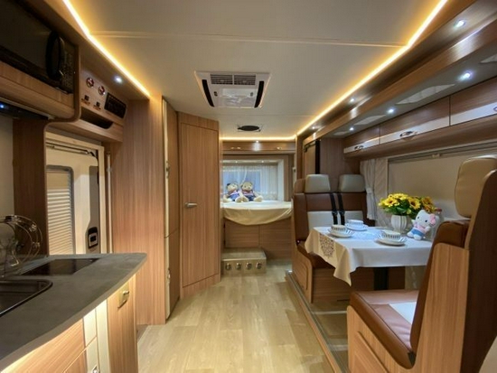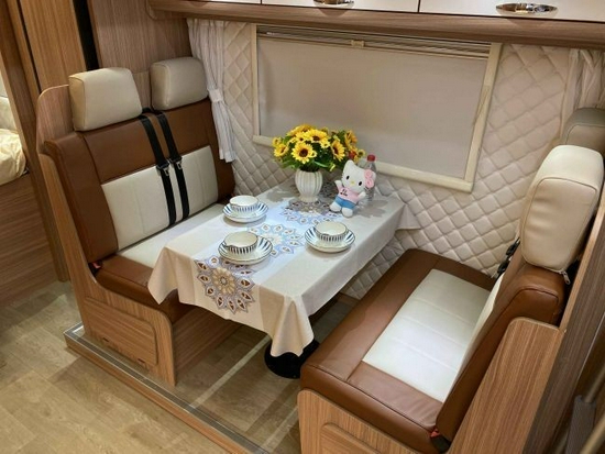 车内采用常见的C型房车布局,其内饰氛围设计也比较符合国人的审美要求。双拓展机构对于户外驻车生活也提供了充裕的内部活动空间。新车依然秉承了高品质,做工精良的特点。