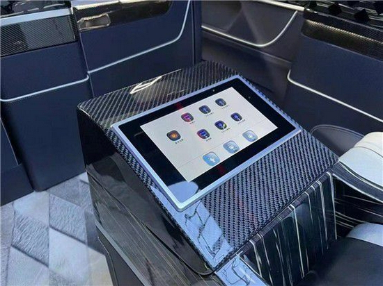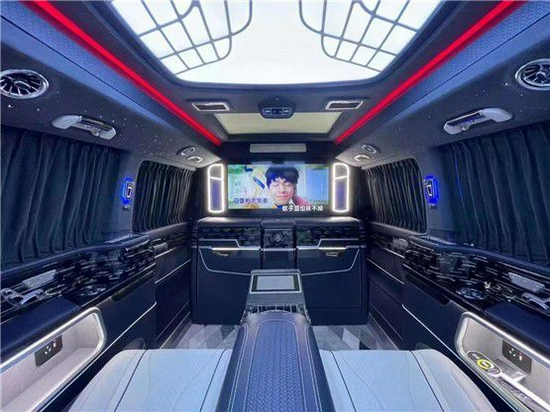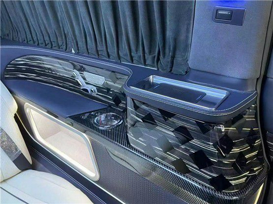 这款奔驰V260L改装在内饰可谓是奢华至极,首先前后舱是分别设计的,进入后舱映入我们眼帘的是一个大型的隔断电视,电视下方内附升降机构,坐在后方的航空座椅上,看着好莱坞精彩大片,可谓是享受至极。电视下方的隐藏秘书座椅可一键打开一键收回,整车使用的是柏林之声音响,奔驰V260L商务车每一项配套都紧跟时代脚步,极高的提升了整车的使用价值。