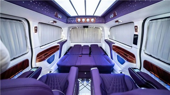 后排三联排座椅,中间躲藏着中央扶手箱,内置有全彩触控屏,使得后排贵宾也能自如的操控车上的功用。一键放平靠背,车舱内又能惊现出一张双人床来。全新奔驰V260的灯光设计也是映入视野采用六宫格顶灯和星空顶灯搭配,光纤氛围灯营造宁静安宁的休息气氛。全新奔驰V260改装具有绝佳的空间设计,让商务出行愈加放松可调整的座椅设计能根据理论需求灵活改动,满足各种类型的运用恳求。