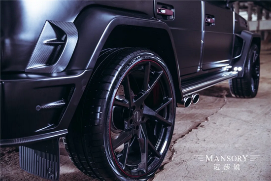 MANSORY迈莎锐定制的24寸全锻运动轮毂搭配395/30ZR24(104Y)高性能车胎让全车霸气指数进一步升级,暗示了MANSORY迈莎锐G63 P720爬坡越涧如履平地的强大越野能力。加之重新设计的双侧四出排气孔,似乎隔着屏幕都能感受到G63 P720隐藏在硬朗躯壳下的惊天动力。