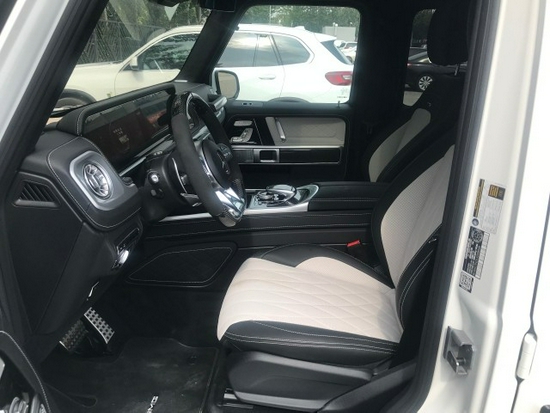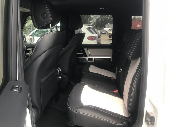 全新一代G级在内饰上也带来了较大的变化,一改此前 机械式复古的设计风格。新车采用全新家族设计语言,线条较为平直硬朗造型简洁;中控台配以大 量哑光金属材质装饰,提升内饰质感,全新设 计的空调出风口造型精美。内饰最大亮点是全液晶仪表与中控屏组成的双12.3英寸超大连屏,其中液晶仪表可显示三组不同界面,而根据配置的不同,部分车型将配备传统机械式仪表。此外,新车还采用电子怀挡杆取代了此前的机械结构。