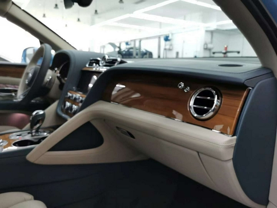 宾利添越内饰奢华至极,真皮包裹的方向盘手感无与伦比,真正了解添越之后会发现,驾驶感觉难以置信,面对着方向盘的这个位置才是最被重视的。精致典雅的内饰由英国克鲁工厂纯手工完成,用料做工极为考究,座席肩部钻石纹绗缝工艺,剪裁精巧,座席之上刺绣宾利徽章所洋溢的对称风格设计,庄重而别致。最上方的这块石英表做工足够精致,传统钟表在车内出现更多的作用就是提升品位。