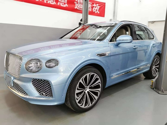 宾利添越 (配置|询价)长*宽*高5141*1998*1742 mm,轴距2992mm,属于中大型SUV。展翅腾飞的“B”字是宾利最强劲、永不妥协的标志,它是呈现给世人的永远是动力、尊贵、典雅、舒适与精工细做的最完美结合。网状方形进气格栅设计出现在车上,圆形的前大灯也是宾利一惯的风格,可以说辨识度是相当的高。