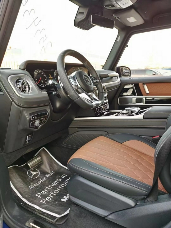 21款奔驰G63豪华精致的真皮包覆提供了足够的舒适性和支撑性,通风和加热功能让乘客免受高温和寒冷的煎熬。中控台多处均采用碳纤维材料覆盖,带彩色TFT显示屏的AMG仪表盘、AMG主菜单和单独的挡位显示器以及采用白色照明的AMG门槛。名贵的选材及精湛的内装令人拍案叫绝。