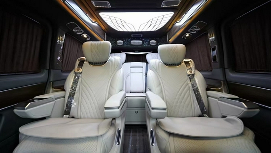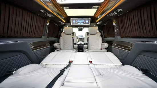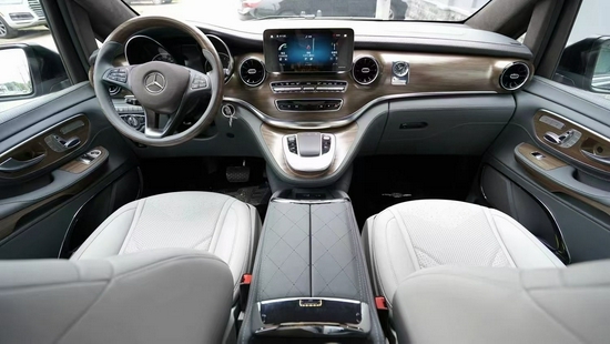 不愧为顶级豪华车的称号 奔驰V260改装迈巴赫版商务车,8.4寸中控液晶屏、大量的高光泽钢琴漆装饰面板装饰、Nappa真皮多功能方向盘,操纵感流畅,两个座之间配备了扶手冰箱、TouchPad触控板、全新三幅式方向盘、气氛灯等细节共同打造驾驶舱奢华感。