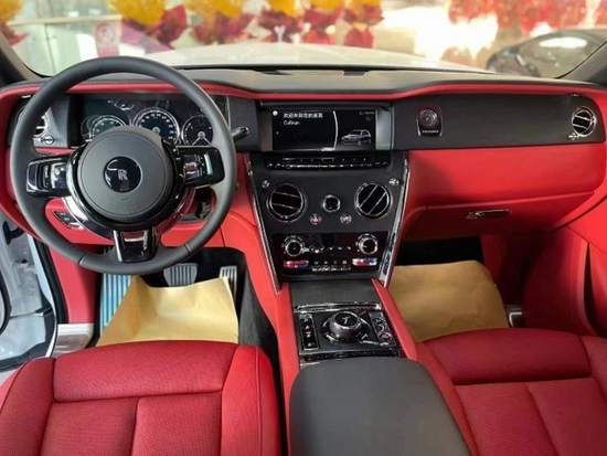 劳斯莱斯库里南整体用料一如既往的奢华高贵,中控采用大面积实木打造,配合方向盘上的实木点缀,让内部的尊崇体验没有一丝怠慢之处。仪表盘的设计较为古朴,内部指针清晰可见,外圈还配备有劳斯莱斯珠宝般的装饰环。方向盘沿用了经典的三辐式造型,但是整体设计更加小巧、厚实,并且内部包裹有可加热的柔软材质。