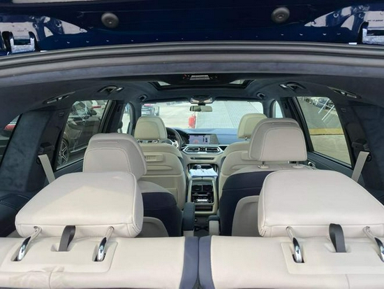 新款宝马X7在将第二排的腿部空间调整至两拳后,第三排可以获得一拳的腿部空间,虽然头部空间比较有限,不能与MPV车型相提并论,宝马X7的第三排也并不像一般SUV车型那样会有一种压抑感,视野很好,不会被前排的座椅有所遮挡,客观地说,宝马X7的第三排是够用的。并且车内第五区的空调就是为第三排乘客服务的,座椅两侧还各有一个Type-C接口,顶部还设有一扇不能开启的天窗,但能够给后排带来良好的采光,绝对不会感到压抑。