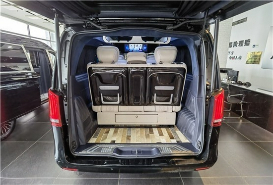 奔驰V260在内部装潢上也进行升级,车体提供真皮、Alcantara以及木材和碳纤维多种材质可供选择。而MPV车型看中的合金踏板、合金门把手以及内装台板等这款车都有所配备。科技配置还有AppleTV、两个独立15.6英寸显示屏、蓝光播放器以及DVB-T信号接收系统等。