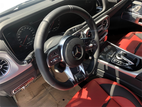 运动感搭配车型专属细节:内饰设计 AMG G63被赋予了更具当代风格的内饰,与鲜明外观特点交相辉映。侧面通风口和仪表板上的高音音箱分别呼应了圆形大灯和转向指示灯的形状。AMG G 63的标志性特征还包括副驾驶前方的扶手和3个差速锁的镀铬开关。