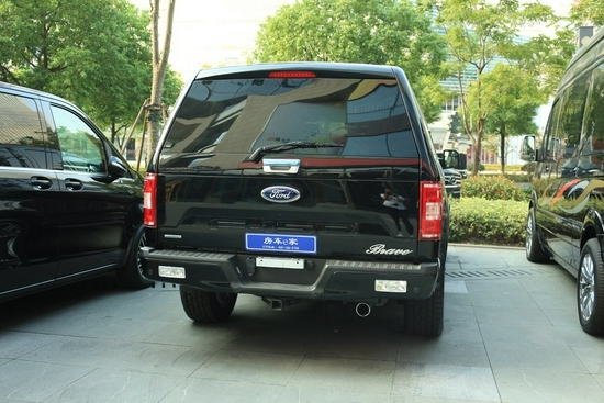 大多数没有接受过美式皮卡洗礼的国人,关于勇猛者有着5895×2040×2004的大块头身躯,站在车头前着实会被吓一跳。哑光银进气格栅中镶嵌着镀铬条和醒目的FORD车标,底下是亮泽的拖车钩,前杠延伸营造出伪宽体效果让整车看起来庞大。