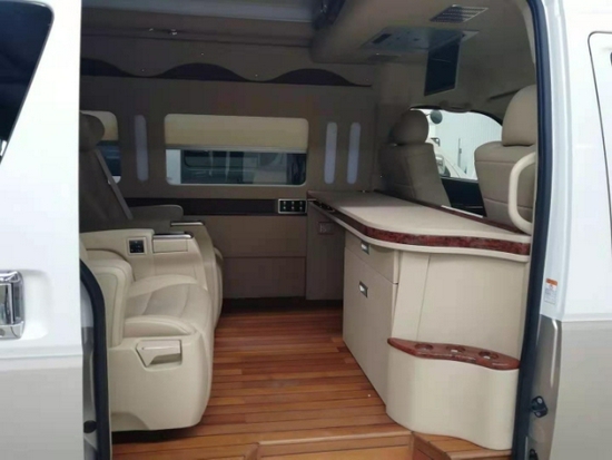 国六丰田海狮宽大的深灰色隐私车窗,令车身侧面外观保持连贯流畅,全车整体更协调自然。内置项目包括豪华办公桌、高级旋转多功能座椅电影音系统、冰箱,桃木内饰,私密玻璃,卫星导航系统等几十个项目。