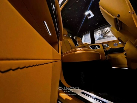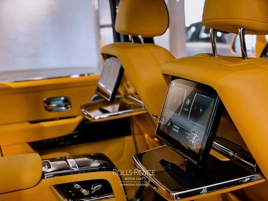 劳斯莱斯库里南大面积真皮包裹的设计,则成功的营造出奢华舒适的内饰氛围。仪表盘的设计较为古朴,内部指针清晰可见,外圈还配备有劳斯莱斯珠宝般的装饰环。方向盘沿用了经典的三辐式造型,但是整体设计更加小巧、厚实,并且内部包裹有可加热的柔软材质。