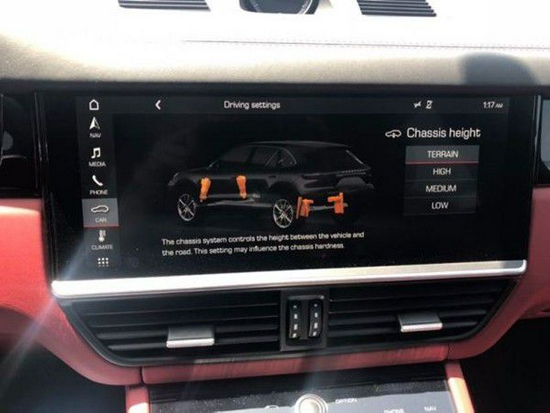 保时捷卡宴车内,经过重新设计的操控区域简约时尚,一体式操控台配合拉丝铝合金装点,让整个空间豪华感倍增。通过调节中控台上的按钮,选择将空气悬挂升到最高位置。保时捷卡宴为了证明自己公路suv跑车的名号,其转速表从边缘移动至中央位置,而方向盘也更加小巧。说到卡宴的运动性能,在保时捷徽标的映照下,相信没有人会怀疑它在这方面的天赋。