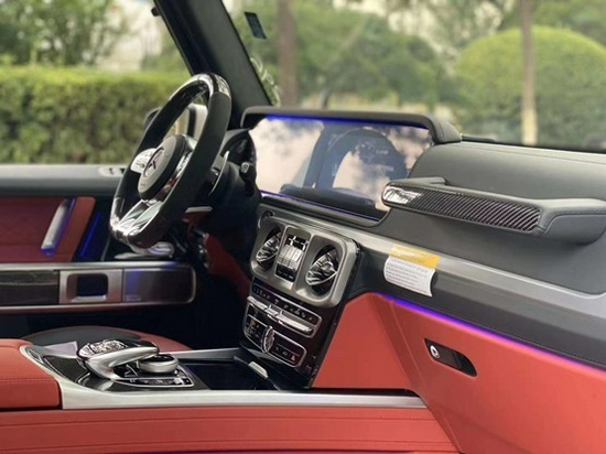 20款奔驰G63全新的直瀑式进气格栅可以说是家族最新的设计风格,也是在新车外观造型上与奔驰系列产品差异化最明显的地方。此外,G63最大的轮圈尺寸,进一步提升了它外观造型的彪悍程度。展车不仅采用了全新的车身涂装,还搭配了红色的轮圈装饰,更加个性。