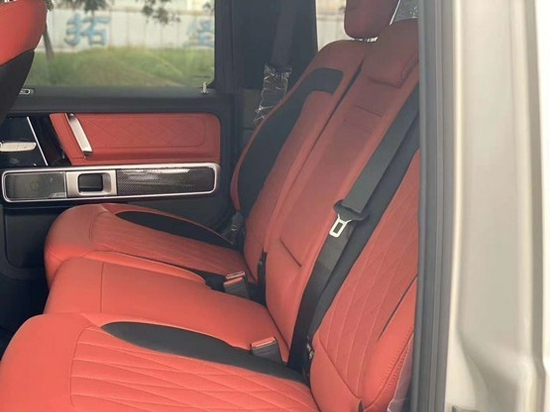 20款奔驰G63车内用料以真皮为主,部分碳纤维及铝合金装饰件。如今的G级是纯粹的豪华车了,跟那些纯粹越野车不一样的,车内配置很高,像这个座椅除了各种电动调 节功能外,还带有腰托、腿托以及加热、通风、记忆功能。全新奔驰G63开始重视后排乘客感受,在腿部空间和座椅舒适性上均有所提升,极具针对性的改善了老款车型的不足。