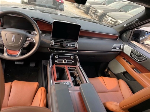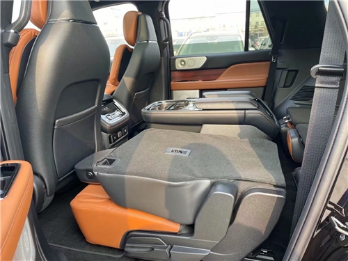 21款林肯领航员的内饰非常奢华,多功能方向盘,中控台的造型与宽大的车身相呼应,新车全部真皮包裹座椅,内饰采用桃木搭配设计,高贵典雅,加高加大的车身除了增加内部空间外,还给人营造一种尊贵典雅的感觉。最新林肯领航员新车采用了2+2+3的座椅布局,第二排采用了两个独立座椅,座椅内侧均配有扶手,舒适度超强。