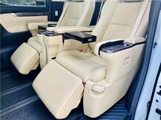 内饰:豪华是第一要义,内部双擎版和燃油版保持一致,内部采用2+2+3的座椅布局方式,当然最重要的是第二排的老板座椅,拥有多种电动可调角度,埃尔法双擎只有两个版本,分别是豪华版和尊贵版,豪华版座椅使用的是真皮+合成皮,而尊贵版座椅使用的是Nappa真皮+合成皮,并且只有尊贵版才有第二排Ottoman宽适旗舰座椅,其拥有电动腰托、可调头枕、可倾倒功能,并且还有座椅通风加热、座椅记忆功能,比豪华版贵了5万块,一部分成本就花在这里。
