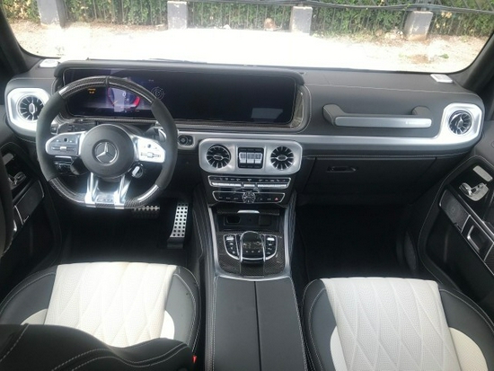 全新一代G级在内饰上也带来了较大的变化,一改此前 机械式复古的设计风格。新车采用全新家族设计语言,线条较为平直硬朗造型简洁;中控台配以大 量哑光金属材质装饰,提升内饰质感,全新设 计的空调出风口造型精美。内饰最大亮点是全液晶仪表与中控屏组成的双12.3英寸超大连屏,其中液晶仪表可显示三组不同界面,而根据配置的不同,部分车型将配备传统机械式仪表。此外,新车还采用电子怀挡杆取代了此前的机械结构。