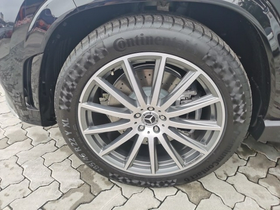 整个侧身肌肉感十足的设计,给人感觉特别的霸气魁梧,还有黑色的窗边框和黑色的行李架,尽显沉稳大气。脚踏板的设计方便了上下车,21寸AMG轮毂,造型很是别致。搭载4.0升V8发动机,马力可达490匹,百公里加速时间5.3秒。