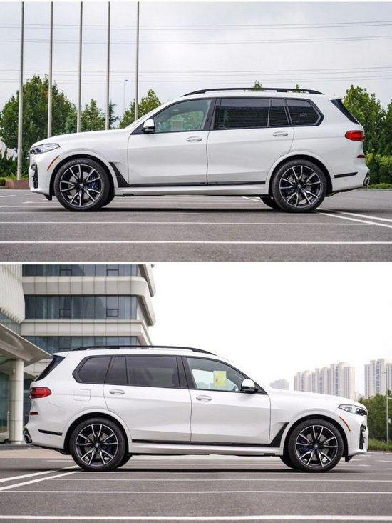 19新款宝马X7侧面上一条腰线从车头贯穿至车尾,使车身侧面看上去十分修长。车窗四周采用当下较为流行的镀铬条进行点缀,显得格外时尚。大尺寸多条幅轮毂的设计充满了动气息,配上车门下方的踏板,显得十分有气势。车身尺寸方面,宝马X7的长宽高分别为5151/2000/1805mm,轴距为3105mm