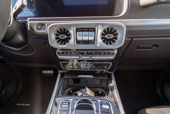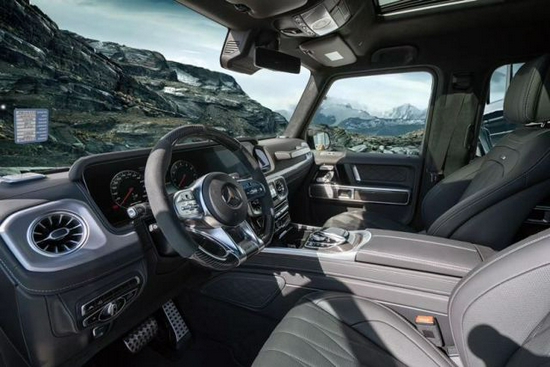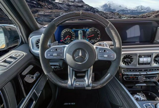 2020款全新G63内饰方面,新G63保留了新G500的整体设计,除配色差异外,新车还换装了全新造型的平底式AMG运动方向盘,其两侧配以打孔皮质包裹,下部镀铬装饰的造型也与新G500明显不同,看上去十分战斗。此外,全液晶仪表盘+中控大屏的双12.3英寸屏幕设计在新车上也没有缺席,营造出了浓郁的科技感。